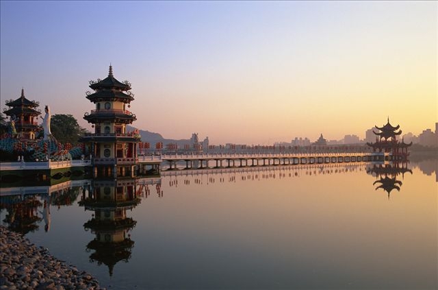 澄清湖位于高雄的鳥松鄉(xiāng),是高雄第一大湖,舊名“大埤湖”或“大貝湖”,媲美大陸的西湖,也是重要的水源地和風(fēng)景區(qū)。梅隴春曉、曲橋釣月步入巍峨的觀光大門一眼就見到兩座紅色中國式宮殿建筑,左邊的是淡水館,右為海水館。
