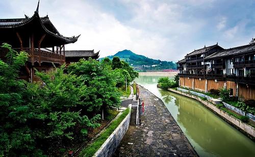 滄浪之水清兮,可以濯我纓,滄浪之水濁兮,可以濯我足……濯水古鎮(zhèn)位于重慶市東南部,距黔江城區(qū)26公里,渝懷鐵路、渝湘高速公路、319國(guó)道從這里交匯穿過(guò),交通極為便利。濯水所在的阿蓬江流域,早在一萬(wàn)年前就有人類活動(dòng),流淌過(guò)濯水古鎮(zhèn)的阿蓬江發(fā)源于湖北利川,是我國(guó)僅此一條自東向西流淌的內(nèi)陸河,自古與烏江、酉水一起成為溝通三峽地區(qū)和江漢平原的重要通道。