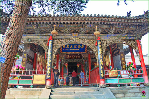 據此傳說,人們便在萬佛閣五爺殿對面建造了一座別致典雅的戲臺。歷史上,這里每逢農歷六月就要唱戲,因為五爺愛看戲。而這位龍王菩薩懲惡揚善、救民于水火、有求必應的故事,更是一串接一串。所以,來這里朝圣許愿的人特別多。走進萬佛閣,眼前仿佛浮現出了先人們虔誠祈禱的熱烈場面,現代人懸掛的錦旗牌匾也很多樣式。朝圣許愿的人流中,各色的臉孔和各色的裝束包藏著各色的心態,其中不乏命運杯具者,也不乏春風得意者:他們懷著各自的目的涌向這里,一切張狂都得到了暫時的收斂。即使是為非作歹者,也似乎恢復了人性,喚起了良知。
