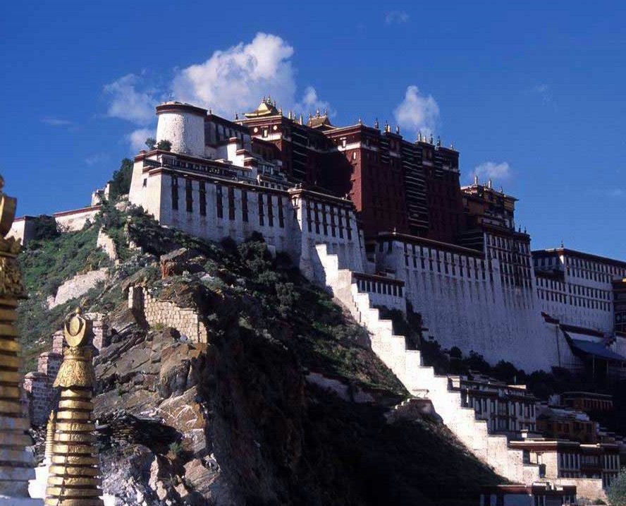 布達拉宮始建于七世紀松贊干布時期。十七世紀五世達賴喇嘛時期重建后,成為歷代達賴喇嘛的住息地和政教合一的中心。主體建筑分白宮和紅宮,主樓十三層,高115.7米,由寢宮、佛殿、靈塔殿、僧舍等組成。布達拉宮是歷世達賴喇嘛的冬宮,也是過去西藏地方統治者政教合一的統治中心,從五世達賴喇嘛起,重大的宗教、政治儀式均在此舉行,同時又是供奉歷世達賴喇嘛靈塔的地方。