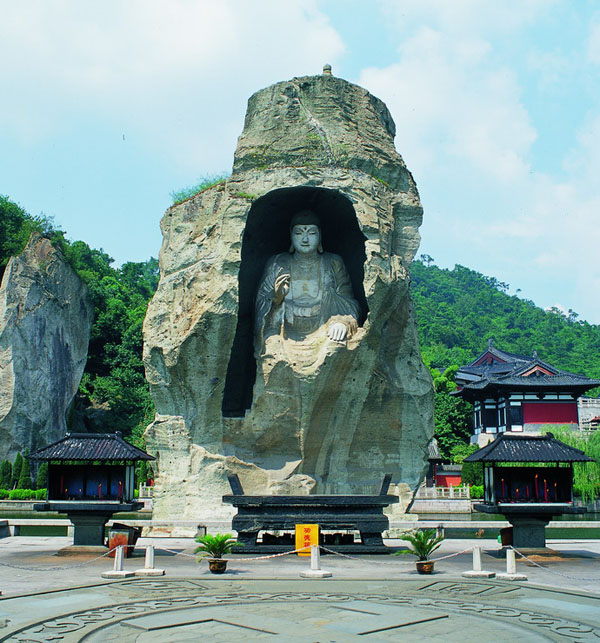 三國時期,這里曾是一處采石場,經歷代能工巧匠的不斷開鑿,鬼斧神工般地造就了姿態各異的石宕、石洞和石壁。千百年來,隨著宗教的介入,文人名流的渲染及后人的開發,現已形成天工大佛、爐柱晴煙、七星巖、八卦臺、文昌閣、蠶花洞、蓮花聽音等景觀。