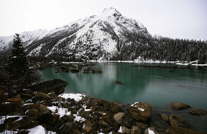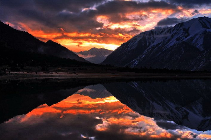 然烏湖周圍高山危聳峻峭,眾多海拔5000米以上的高峰皆有冰川發育;而山下近湖坡地則長滿了青翠蒼勁的松柏等針葉林叢,在這群山綠影環抱之中的然烏湖顯得格外靜謐而嫵媚,它那明鏡般的湖面倒映著四圍的雪峰、翠林和那藍天白云,景色異常迷人;再加上湖畔綠茵般的草灘上成群的牛羊以及一塊塊生長著青稞、豌豆、油菜等作物的農田點綴其間,構成了一幅既有青藏高原獨特的壯麗風貌、又有藏區田園牧歌般風韻的風情畫卷。當你沿著湖邊公路巡視暢游時,你就會充分領略到這里的風采,并讓你有種回歸自然的感覺,心曠神怡之極。