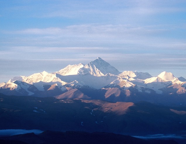 珠穆朗瑪峰是世界最高大的山系喜馬拉雅山的主峰,海拔8,844.43m,為世界第一高峰。珠穆朗瑪為藏語的音譯,意為“女神第三”。山體呈金字塔狀,山上冰川面積達(dá)1萬平方公里,最長之冰川達(dá)26km。山峰上部終年為冰雪覆蓋,地形陡峭高峻。是世界登山運動矚目和向往的地方。山間有孔雀、長臂猿、藏熊、雪豹、藏羚等珍禽奇獸及多種礦藏。