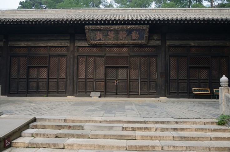 無量壽佛殿上懸有“動靜等觀”的匾,是乾隆御筆。殿內正中供奉著無量壽佛(即阿彌陀佛)坐像,左右是觀音菩薩和大勢至菩薩立像,無量壽佛、觀音菩薩和大勢至菩薩被稱為西方三圣。背面供奉著南海觀音,又稱海島觀音。無量壽殿前左右各有一塊碑,南面一塊是明成化十四年(1478年)所建,刻有《御制重修大覺寺碑》。北面一塊明弘治十七年(1504年)為明孝宗所建,刻有《大明敕諭》,記載了明成化十四年(1478年)奉周太后之命重修大覺寺的歷史,又稱為大明敕諭碑。版權所有山東聊城聊之旅國際旅行社有限公司,轉載必究!大悲堂,又稱大悲壇,位于中路建筑北端,懸有大匾“最上法門”,其北面坡上有迦陵舍利塔,靈泉池,和龍王堂。現在里面的佛像已不存在,在這里進行《大覺寺歷史沿革展覽》。南路四宜堂,俗稱南玉蘭院,位于寺院的南路,修建于康熙年間,是雍正皇帝以自己齋號命名建筑。四宜堂北是乾隆皇帝題名的憩云軒。北路大覺寺的北院為僧人居住,有方丈前院、方丈后院、北玉蘭院等建筑。