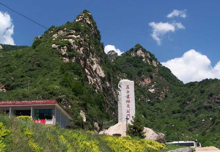 本區(qū)在地質(zhì)構(gòu)造上屬于華北古陸太行山中段東麓,區(qū)內(nèi)廣泛出露中、下元古界變質(zhì)巖系,其巖性主要為片麻巖、變粒巖、角閃片巖、斑狀花崗巖等。由于新生代喜馬拉雅運(yùn)動(dòng)的強(qiáng)烈抬升和差異斷塊活動(dòng)。造成了平的華北平原(海拔幾十米)與高聳的太行山的強(qiáng)烈對(duì)比,形成了一系列相對(duì)高差較大的陡峭山峰,本公園就處在由古老變質(zhì)巖基礎(chǔ)上發(fā)育起來(lái)的斷塊中山地區(qū),海拔1000-2150米,由于斷塊構(gòu)造形成了景區(qū)內(nèi)山地溝深坡陡、山勢(shì)雄奇險(xiǎn)秀,峽谷多而幽險(xiǎn)。五岳寨主峰呈五峰獨(dú)立之勢(shì),如一組巨大的盆景被太行山當(dāng)胸托起。主峰1946.5米,最低峰亦1880米以上。山勢(shì)陡峻、雄險(xiǎn),東南側(cè)陡崖壁立,直垂谷地深達(dá)數(shù)百米。僅十幾平方米的頂峰巖石平臺(tái),三面臨萬(wàn)丈絕壁、奇險(xiǎn)無(wú)比。站在峰頂極目四望,蒼茫中天地一色,千山萬(wàn)嶺盡收眼底,讓人真正體會(huì)到“會(huì)當(dāng)凌絕頂,一覽眾山小”的境界。五岳寨地質(zhì)資源豐富,山形地貌奇特,猴頭峰、石駝峰、鴛鴦石、將軍石等許多山峰奇形怪狀,擬人似獸、栩栩如生。