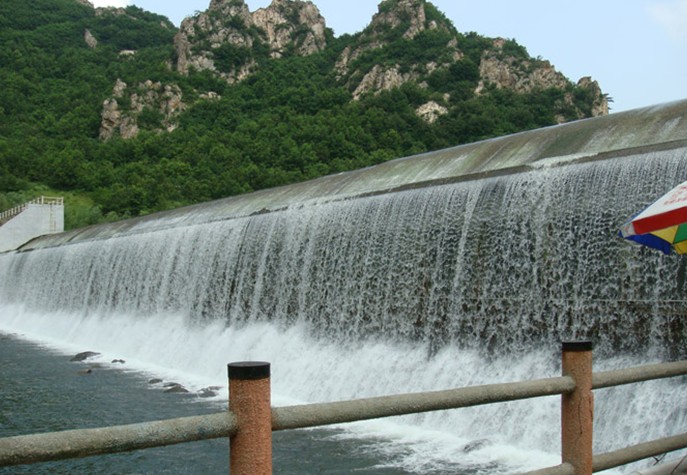 “雙龍壩”全長192米,高15米,形成約五公里長的“英納湖”水面,水面可延伸至冰峪北門(紅房子),形成“高峽出平湖”景觀,在這里既有桂林山清水秀的特色,又有三峽雄峻奇偉的風姿。該區域西岸奇峰林立,風景各異可乘船游覽欣賞新開發的景點。壩前形成湖面,可開展旅游、滑船、垂釣等水上游樂項目,冬天還可滑冰、建滑雪場。壩后則形成瀑布,游人可在廓道中觀賞瀑布和山水風景,有入“水簾洞”感覺。同時又有天壁峰至小峪河“別有天”的環山步道,連通英納河與小峪河水系。