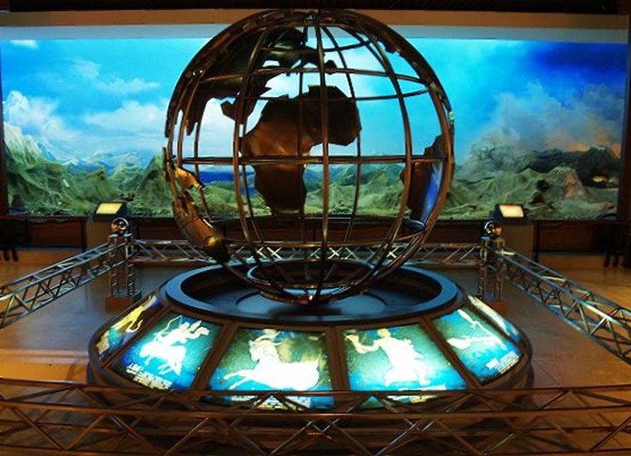 大連自然博物館的展覽是以“自然與人”為主題進行設計的。當觀眾步入館內的陳列大廳時,首先躍入眼前的是由肯尼斯•貝林先生于2003年捐贈的非洲象,肩高3.0米,體長約5.1米,尾長1.5米,體重約6000公斤。后面是一幅長22米,高3米的大型浮雕,他們將“自然與人”藝術而完美的融合在一起,氣勢宏大而壯觀,充分體現了濱城特色和陳列展示主題。