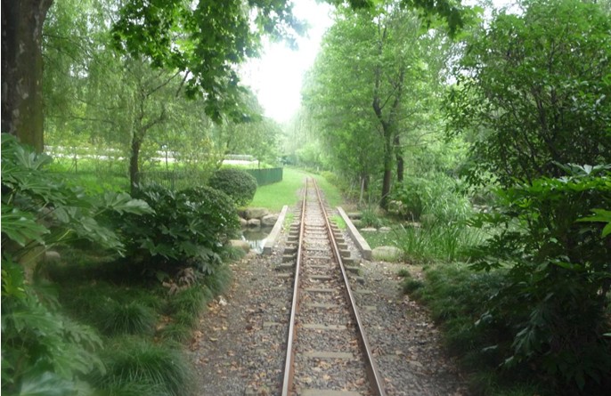 原址位于公園西門南側,軌長僅300米,建有站臺、售票房、模擬動物等景點,投資56萬元。1993年集資90萬元,由中華造船廠負責施工,將軌線延伸至園內各景點,全長約2公里,中途增設站臺4座,