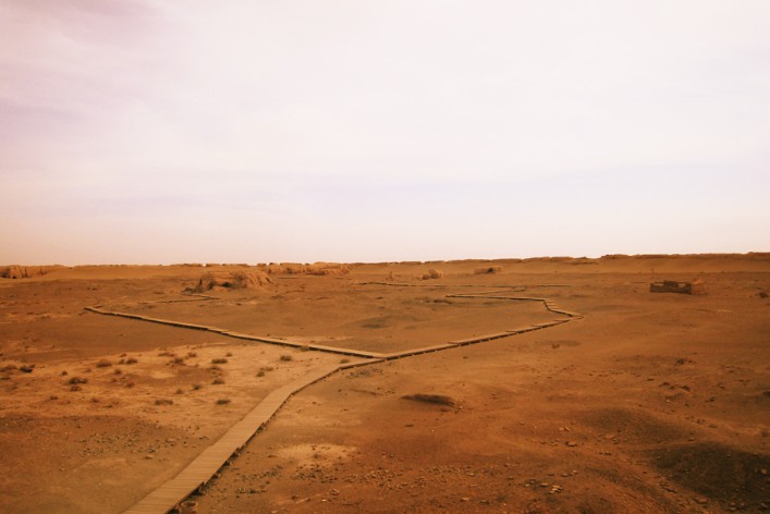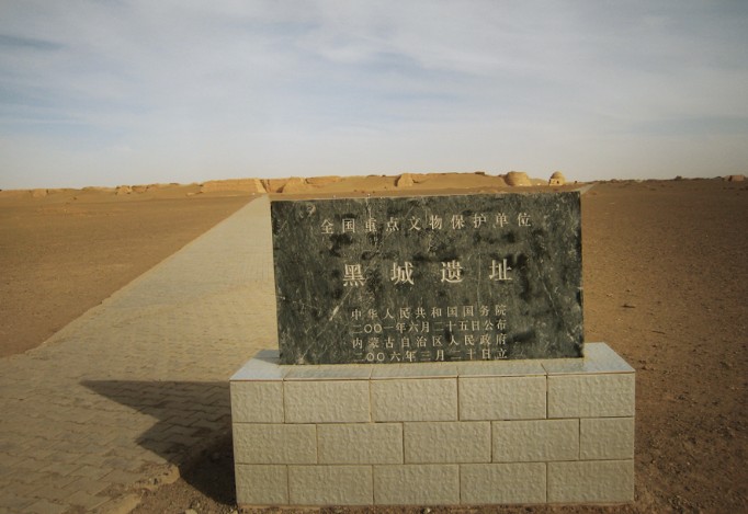 黑城遺址位于內蒙古額濟納旗達來呼布鎮東南25公里處,是古絲綢之路上現存最完整、規模最宏大的一座古城遺址。該城建于公元九世紀的西夏政權時期。公元1372年明朝大將馮勝攻破黑城后遭廢棄。至今城內還埋藏著豐富的西夏和元代等朝代的珍貴文書。近年來,由于周邊地區沙化嚴重,流沙從東、西、北三面侵蝕黑城,許多遺址已埋于沙下。文物保護工作者呼吁有關部門盡快行動起來,搶救性保護黑城遺址。