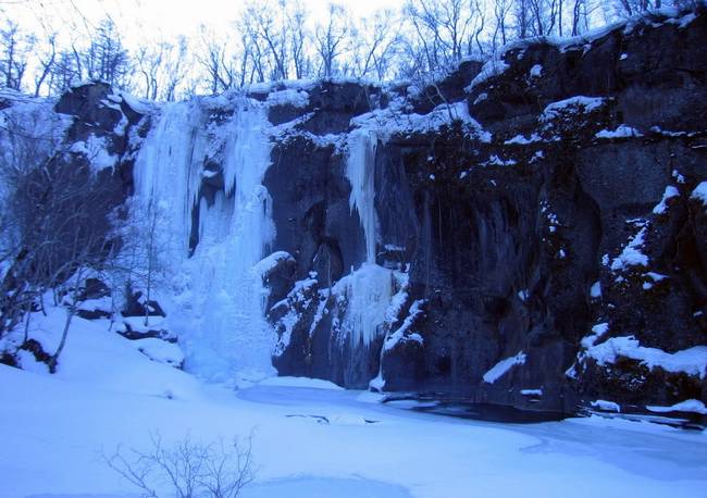 長白山天池四周奇峰環繞,北側天文峰與龍門峰之間有一缺口,池水由此缺口溢出,穿流在懸崖峭壁之間的乘搓河(又稱白河、天河)向北流經1250米處的斷崖飛流直下,以雷霆萬鈞之勢,夾帶著震天的吼聲,跌向深深的谷底,形成落差68米高的瀑布,這就是蔚為壯觀的長白瀑布,它是長白山的第一名勝。夏日,晴空萬里,遠望瀑布,似錦緞從天抖落,在陽光照耀下非常耀眼。飛瀑下落,裊裊娜娜,飄逸曼妙;近臨瀑布,則浪花翻騰,在陽光的照射下,發生折射和反射,水汽彌漫,橫空出彩虹,絢麗奪目,似虹霓霞霧、珠垂玉墜,令人嘆為觀止;來到瀑布旁邊,可以聽到瀑布的巨大吼聲,好似千鼓齊鳴,萬雷爭吼,又象金戈相擊、鐵馬互奔的聲音,飛瀑濺起的層層水霧,仿佛是兩軍拼搏揚起的陣陣煙塵。穿過繚繞的云霧,但見浪花翻滾,飛浪四濺,細雨蒙蒙,似雨雪交加;停立瀑邊,白云從身邊繞過,仿佛置身于云天之外。乘搓河水流不大,但水勢湍急:它上與天池相接,下通二道白河,是松花江的正源。