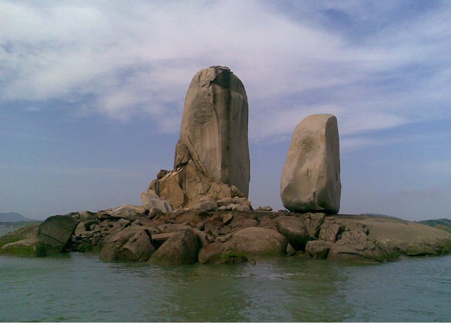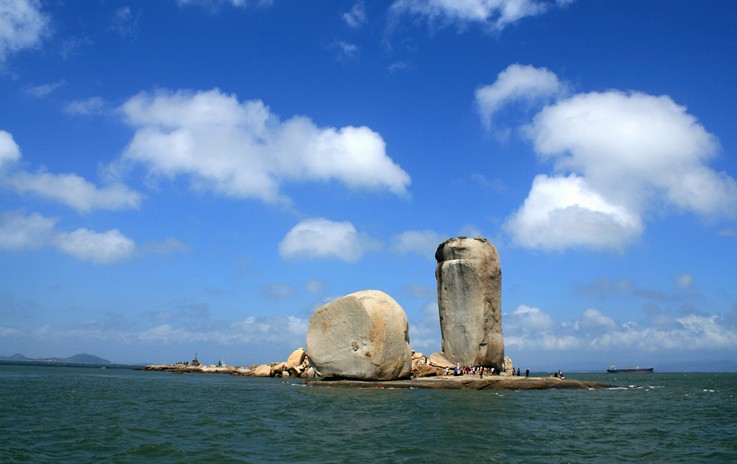 從看澳村岸邊坐渡船,十幾分鐘就到達(dá)礁石上,礁石底部是一組平坦完整的巖石。兩個(gè)石柱均由粗粒灰白色的花崗巖組成 東側(cè)的一個(gè)高達(dá)33米,胸寬9米,厚8米;西側(cè)的一個(gè)高17米,胸寬15米,厚8米。版權(quán)所有山東聊城聊之旅國(guó)際旅行社有限公司,轉(zhuǎn)載必究!兩個(gè)石柱的底部都是近似四方形體,直立在礁石上。據(jù)地質(zhì)學(xué)家考證是世界上最大的花崗巖球狀風(fēng)化海蝕柱。由于它的奇特壯觀,對(duì)游人有著強(qiáng)烈的震撼力和吸引力。建設(shè)部與中科院的專家稱之為:“壟斷性的世界級(jí)旅游資源。”明代旅行家陳第曾譽(yù)之為“天下奇觀”, 清朝女詩(shī)人林淑貞詩(shī)贊:“共說前朝帝子舟,雙帆偶趁此句留;料因濁世風(fēng)波險(xiǎn),一泊于今纜不收.