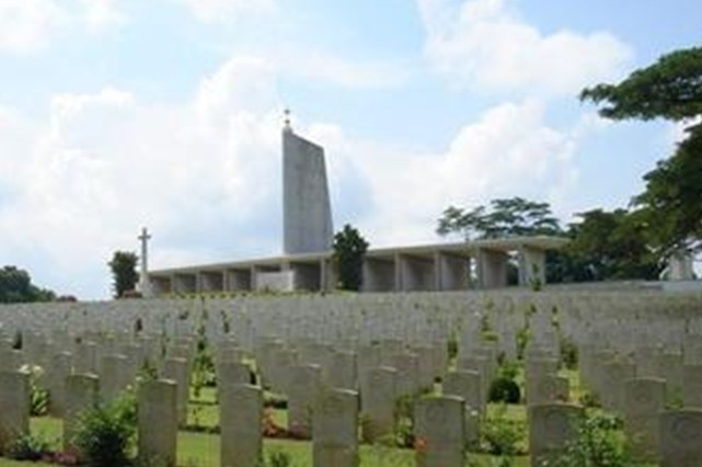 克蘭芝烈士紀念碑是為紀念二戰時期為了保衛新加坡而戰死的4000余名英軍戰士而修建的,慰靈塔是公墓的象征。公墓內除了二戰中陣亡的將士之外,還有約24000名英國人長眠于此。墓地草坪格外美麗,里面排列著白色十字架。湛藍的天空、耀眼的太陽以及藍天白云下手捧鮮花默默而立的人們,使人戚然神傷。