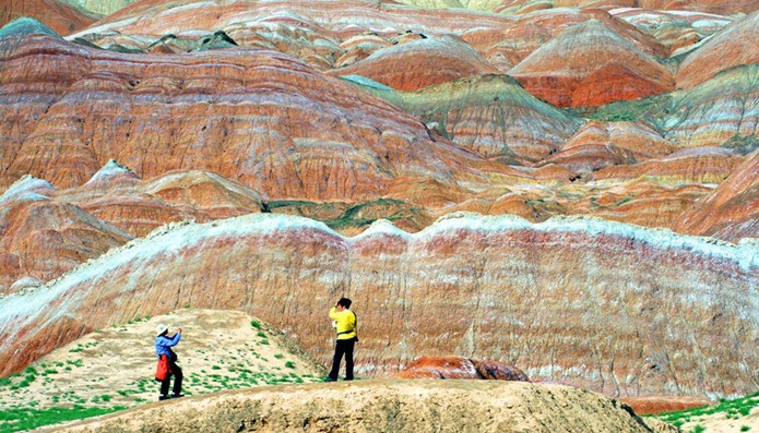 張掖丹霞地質公園經過雨水洗潤,甘肅張掖丹霞地質公園內色彩斑斕的戈壁丹霞地貌令游客流連忘返。張掖丹霞地質公園位于臨澤縣倪家營鄉和肅南縣白銀鄉交界處,總面積約510多平方公里。