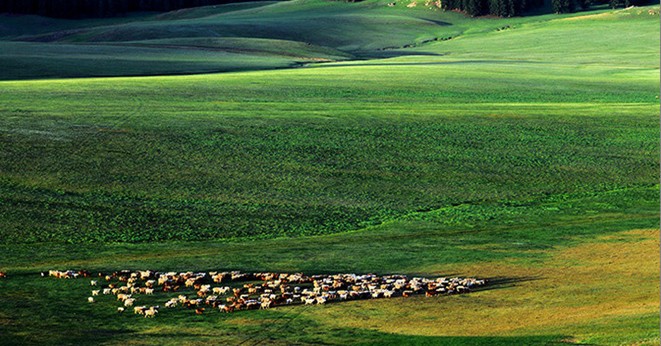 春天的巴里坤草原,冰雪隨著溫暖的陽光漸漸融化。 五月中旬前后,風和日麗,小草兒爭先恐后地冒出了頭,在微風細雨的撫慰中漸漸長高。 六、七月份,蝶兒紛飛、鳥兒鳴叫、綠浪翻滾,那可真是風吹草低才能見到牛羊啊。這時,你可要當心了,你獨自進入草原之中就會迷失方向,除非你的個頭長的比草高。 草原上最熱鬧的要數八、九月份了:村民們喂養的牲畜的口糧幾乎要全部在大草原里收取,在八月初,你看那草原的四周,人歡馬叫、機聲隆隆,遠遠看去,一座座白氈房猶如雨后的蘑菇破土而出 巴里坤草原上的冬天來的很早,到了10月底,草原已被冰雪覆蓋,草原上沒有行人,沒有牲畜,逐漸恢復了平靜。