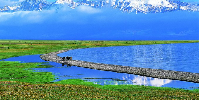 巴里坤是大草原。但巴里坤草原不象內蒙古的草原那樣一望無際,可以看到草天相接的地平線。而巴里坤是盆地,極目遠望,四周與藍天相接的是連綿不斷的山巔。這些山都屬于東天山。版權所有山東聊城聊之旅國際旅行社有限公司,轉載必究!特別是南山尤為高大雄偉,山頂有終年不化的積雪,山腰是四季常青的林帶。山頂積雪融化以后,有的順著山溝流了下來,不到山口就不見了蹤影,全都鉆到地下去了。而有的則就地滲入巖縫。俗話說,“山有多高,有多高”確實不假。因為在山上到處可以見到泊泊的山泉。夏天,水草豐美的高山草甸草場則是牲畜避暑的絕好去處。為數不多的幾條大溝里的水可以流出溝口,便成了山前沖擊扇平原上農田的灌溉用水。在沖擊扇平原的下面,就是地下水溢出帶了。巴里坤盆地不大,南北也就是三四十公里。因此南北兩山的地下水溢出帶集中在盆地中間,有的地方也有十幾公里寬,這里無數泉眼的泉水竟然匯聚出一條條小河,自東向西流入到巴里坤湖。這十幾里寬的地方植被很好,形成了很好的草甸。古詩《疏勒歌》中的“天蒼蒼,野茫茫,風吹草低見牛羊”,據說就寫的是巴里坤。古人也稱這里是“甘露川”。現在人們干脆就叫“草湖”:草,牧草,湖,水也,既有草有水的地方。草湖與巴里坤人的生存息息相關。