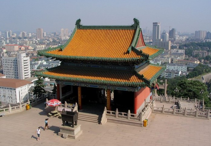 現在的閱江樓,是南京市批準并支持部分資金,由下關區投資4000余萬元建起來的。閱江樓整體成“L”型,主翼面北,版權所有山東聊城聊之旅國際旅行社有限公司,轉載必究!次翼面西,兩翼均可觀賞長江風光。主樓在兩翼的犄角處,外四內三共計七層,總高度為51米,總建筑面積5000多平方米,兩翼各以歇山頂層次遞減,屋頂犬牙交錯,高低起伏,跌宕多變,輪廊優美;屋面覆蓋黃色琉璃瓦,并鑲有綠色琉璃瓦緣邊,色彩鮮麗;檐下斗拱彩繪各異,廊柱、門窗紅中呈暗,更顯古色古香。完全符合朱元璋筆下的“碧瓦朱楹,檐牙摩空,朱廉風飛,彤飛彩盈”的具體描述。