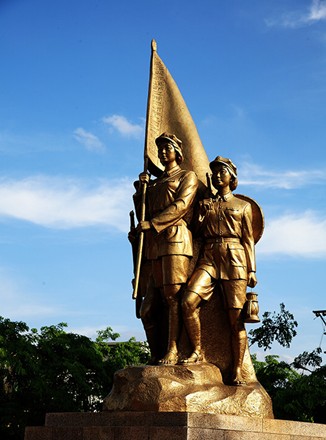 位于海南瓊海市南門的街心公園,于1985年8月1日落成揭幕。雕像由花崗石雕刻而成,坐北向南,高3.7米,連底座總高6.8米。版權(quán)所有山東聊城聊之旅國際旅行社有限公司,轉(zhuǎn)載必究!座基石板鋪設(shè),四周呈六角形,圍以石欄桿,占地面積40平方米。雕像后面是園林花圃等。