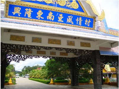 位于海南萬寧興隆溫泉度假區內,坐落在300畝海南獨產的泰國紅椰林中,興隆是東南亞歸僑的故居,從1951年起,先后有印尼、馬來西亞、泰國等18個國家和地區的歸僑來這里安家落戶,并建立了華僑農場。 以熱帶自然風光為依托,以東南亞文化風情為底蘊,東南亞風情村集中而突出地展示出東南亞的自然和人文景觀。