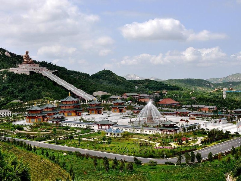 釋迦牟尼坐佛造像,選材錫青銅鑄造,大佛高38.66米,重380噸。由232件佛體、108塊蓮花瓣、302個發(fā)髻、共642塊,錫青銅鑄件組合而成,堪稱目前世界第一大銅鑄佛。大佛右手作“施無畏印”,左手作“施與愿印”, 版權(quán)所有聊城聊之旅旅行社有限公司,轉(zhuǎn)載必究!表示佛為眾生拔除苦難,給予幸福。蓮花座下建有功德堂、萬佛殿和佛教歷史博物館。萬佛殿內(nèi)陳列著9999尊造型逼真,栩栩如生的金銅佛像,與大坐佛共同構(gòu)成了萬尊佛像的宏大陣容,佛教歷史博物館內(nèi)展示了佛教文化興起興盛的歷史記載,館內(nèi)陳列展出了釋迦牟尼佛舍利等數(shù)十件文物和佛教文化藝術(shù)珍品。南山大佛熔古今中外佛像鑄造藝術(shù)的精華,使古老的青銅鑄造藝術(shù)和現(xiàn)代科技成果于一體,展現(xiàn)了佛教文化和現(xiàn)代文明的完美結(jié)合。