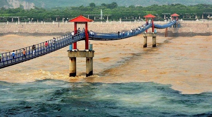 風(fēng)景區(qū)小浪底水利樞紐區(qū)。有1667米處,體積達(dá)5185萬方的亞洲第一土石大壩;有世界上最大的地下廠房、進(jìn)水塔、消力塘。工程以防洪、防凌、減淤為主,兼顧灌溉、供水和發(fā)電。在小浪底洞群調(diào)水調(diào)沙期間,六龍噴水,黃白兩色交織,形成浪底云煙,驚濤拍岸,氣勢(shì)磅礴,彩虹高懸,不是瀑布勝似瀑布。