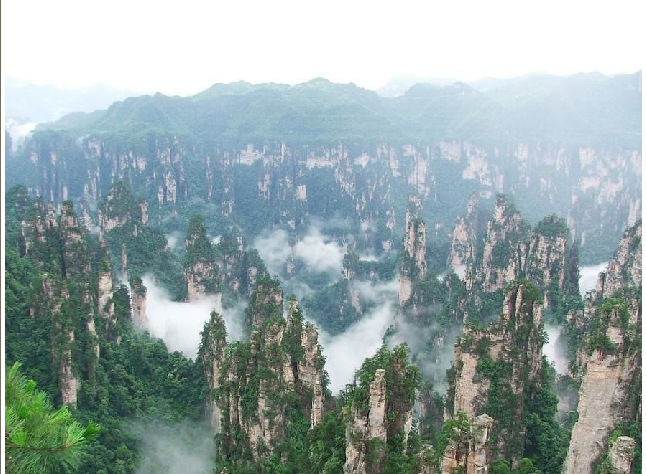 張家界以其得天獨厚的旅游資源聞名于世。以中國第一個國家級森林公園張家界和天子山、索溪峪兩個自然保護區組成的武陵源風景區面積達369平方公里,區內以世界罕見的石英砂巖峰林峽谷地貌為主體,集桂林之秀、黃山之奇、華山之險、泰山之雄于一體,藏賂、橋、洞、湖、瀑于一身,有“擴大的盆景、縮小的仙山”之美稱。