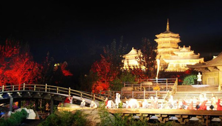 《禪宗少林•音樂大典》由譚盾提綱藝術總監和音樂原創,梅元帥制作,易中天、釋永信顧問,黃豆豆編導,陣容強大,實力空前。版權所有山東聊城聊之旅國際旅行社有限公司,轉載必究!演出分為《水樂》《木樂》《風樂》《光樂》《石樂》五個樂章,演出規模宏大,音畫一體,88架古箏的激情演奏,近600人的禪武演繹,春夏秋冬的景觀變化,直指心性的佛樂禪音,奏響了一曲中岳嵩山的輝煌交響,每天晚上的定時演出,成為中原文化旅游的一大亮點。