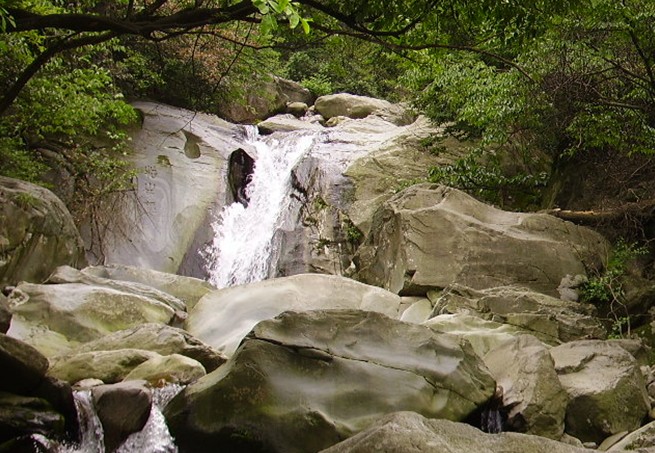 廬山東林大峽谷景區組成部分,地處剪刀峽深處,地形極險極幽,三疊形儀各異,或柔或剛,總落差近百米。有觀瀑臺、觀瀑亭,并有石階沿峭壁通至下瀑潭邊。