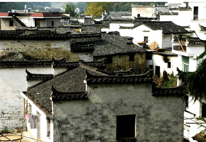 在江西省婺源縣曉起村,據說是江澤民的祖居地,是典型的徽派古生態民俗文化村,既有周莊的小橋流水,又有香格里拉的寧靜悠遠,更有古樸純實的民風民情。婺源曉起坐落于婺源縣城東,距離縣城約二十公里,是段莘水和曉起水交合處,始建于公元787年。如今的曉起,被評為國家級農業生態示范村。曉起有上、下曉起之分。村屋多為清代建筑,風格各具特色,村中小巷均鋪青石,曲曲折折,回環如棋局。主要景觀有雙亭聳峙、楓樟流蔭、進士第、大夫第、榮祿第、江氏祠堂、磚雕門罩、養生河與古濯臺等。“古樹高低屋,斜陽遠近山,林梢煙似帶,村外水如環”。