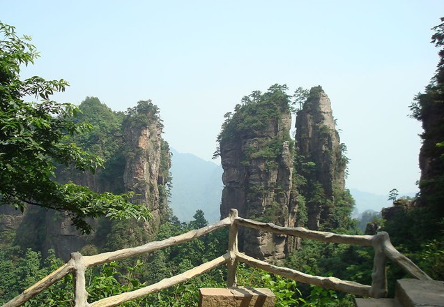 袁家界位于張家界國家森林公園北面,位居張家界武陵源風景名勝區的核心;乘坐世界第一梯—百龍天梯僅需要1分58秒;主要景區有天下第一橋、阿凡達外景取景地"哈利路亞懸浮山"乾坤柱、后花園、迷魂臺、羊寨、中韓友誼亭、天懸白練等景點;站在袁家界景區的觀景臺上,三千奇峰盡收眼底,雄險秀野,神態各異。峽谷深處,千百根石峰石柱奇偉突立。峻峭之石,如英武將帥;嵯峨之峰,似勇猛壯士。有聲有色,若靜若動,形象逼真,呼之欲出。=>