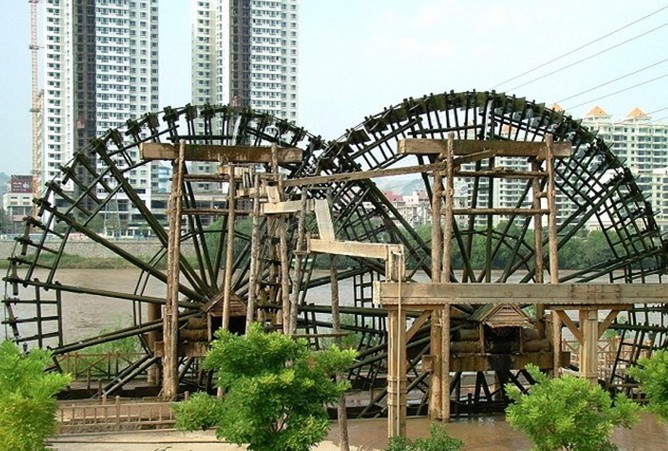 水車發(fā)展第三階段。到了元明時(shí)代,輪軸的發(fā)展更進(jìn)步。一架水車不僅有一組齒輪,有多至三組,而有"水轉(zhuǎn)翻車"、"牛轉(zhuǎn)翻車"或"驢轉(zhuǎn)翻車",可以依風(fēng)土地勢(shì)交互為用。這項(xiàng)發(fā)展,使翻車的利用更有效益。翻車打東漢三國(guó)時(shí)代發(fā)明以來,一直停滯在人力的運(yùn)轉(zhuǎn)。至此,利用水力和獸力以為驅(qū)動(dòng),版權(quán)所有山東聊城聊之旅國(guó)際旅行社有限公司,轉(zhuǎn)載必究!使人力終于從翻車腳踏板上解放。同時(shí),也因轉(zhuǎn)軸、豎輪、臥輪等的發(fā)展,使原先只用水力驅(qū)動(dòng)的筒車,即使在水量較不豐沛的地方,也能利用獸力,而有所貢獻(xiàn)。另外,則有"高轉(zhuǎn)筒車"的出現(xiàn)。地勢(shì)較陡峻而無法別開水塘的地方,也能低水高送,有所開發(fā)。這是中國(guó)水車發(fā)展的第三階段。元明之后,中國(guó)水車的發(fā)展便再?zèng)]有多少特出的成就了。