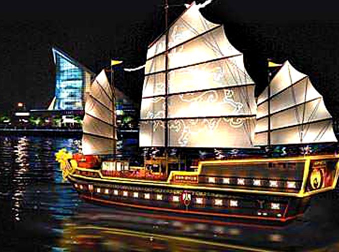 廣東電臺號:168客位雙層游船,整個外觀設(shè)計來源于太空理念, 720°的視覺享受,使游客無論在船上任何位置均可欣賞到星光月華。船頭大廳的木棉花形天花板布局,金色格調(diào)的空間布局盡顯豪華與高檔。
