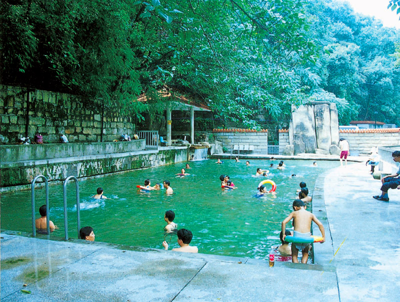 北溫泉的水溫一般為35℃-37℃,日流量達5675噸,屬弱堿性硫酸型礦泉,水中富含多種微量元素,不僅含鈣量高,水中還含有稀有的氡元素,對皮膚、關節、腸胃等部位疾病療病效果極佳。創建公園以后幾經擴建,目前已擁有室內浴室75間,長50米、寬16米的國家標準游泳池一個、現又新建了室內游泳三角池和兒童嬉水池。此外,北溫泉附近存有唐宋以來的眾多題刻,還是中國游泳隊的訓練基地之一。