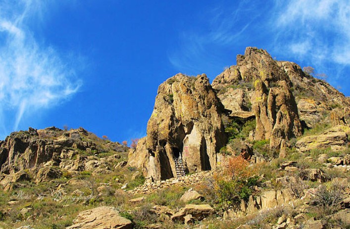 蘇木山之雄奇,首先在天那怪石嶙峋,形態各異的山巖巨石。登臨絕頂,縱眼四望,細究山形,有的酷似羅漢張臂喜迎賓;有的如同金龜伸頭探碧海;有的宛如擎天柱,渾圓挺拔入云霄。面對那形象逼真的“情人石”,不禁引發“頭靠身依情切切,恩愛情第度千年”的幽幽暇思。