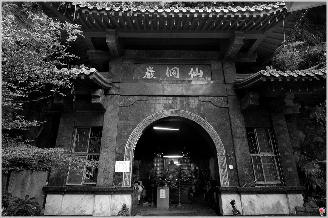 再內為大雄寶殿,供奉釋迦牟尼佛,該殿占地頗廣,因而三十燭光的燈泡更顯出洞內的幽暗,但暗并不妨礙行者的修行,正如殿上的喝語:仙自燦爛展臺稱,洞常幽暗境常清,一顆明星在暗夜中更顯出其明亮,而佛菩薩更能在紛擾熙攘的環境中求得一片凈土,因而所處雖紛亂、晦暗,卻能保有一顆澄明、平常的心。寶殿右側為地藏殿,供奉地藏王菩薩,為生靈開覺路;左側,供奉民間傳說的八仙,更為仙洞巖加上神話色彩。由于石洞天成,且為海蝕,經過長時間的侵蝕后,洞內時而有水滴穿流而下;高搬觸石壁,腐蝕的壁巖屑隨著手指的觸摸而沾滿,心頭一驚,心想,這風化的石壁不知經過了多久時間的摧殘才形成?若再一直風化下去,仙洞巖不知能再在宇宙間存在多少時日?叉百多少有緣人能及時一會?