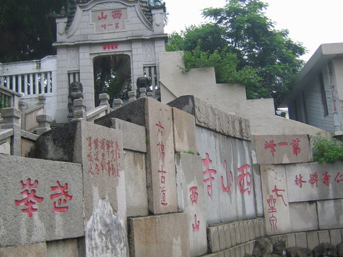 中山西山寺俗稱西山寺,位于廣東省中山市城區西山公園內,始建于明朝嘉靖年間,是讀書人喜聚之地。清道光年間,邑人曾望顏曾在此攻讀詩書,至咸豐六年(1856年)他任陜西巡撫署四川總督時,特募資將古寺加以擴建。由隱泉庵派僧人心恒為主持,歷代相傳,到1949年已傳至十三代。現寺內有伽蘭殿、韋陀殿、大雄寶殿、準提殿、觀音殿、六祖殿、地毅殿、塔殿等,頗為壯觀。
