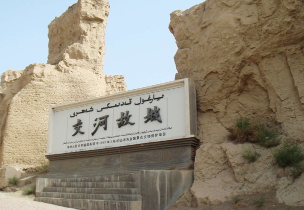 交河故城--是世界上最大最古老、保存最完好的生土建筑城市,也是我國保存兩千多年最完整的都市遺跡,唐西域最高軍政機構安西都護府最早就設在交河故城。1961年被列為國家重點文物保護單位。