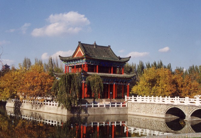 1755年,天山北部準(zhǔn)噶爾汗國(guó)滅亡,清政府開始屯兵建造烏魯木齊城,3年后烏魯木齊城的雛形在紅山南面形成,此處一個(gè)因?yàn)豸斈君R河擺動(dòng)而遺留形 成的湖泊被辟為官員休憩之地,這個(gè)湖泊當(dāng)時(shí)被稱為“海子”數(shù)年后,烏魯木齊辦事大臣伍彌泰在這里建了第一座建筑物即“秀野亭”。這里是當(dāng)時(shí)烏魯木齊一大勝景,有順口溜為證:“紅山嘴子海子沿,塞外風(fēng)光 勝江南。”后來,不知何故,“海子”改稱“關(guān)湖”。1878年,左宗棠收復(fù)了除伊犁之外的新疆地區(qū),四年后,伊犁回歸祖國(guó),1884年新疆建省,新疆的統(tǒng)治中心為現(xiàn)在的烏魯木齊,首任新新疆巡撫劉錦棠將“關(guān)湖”四面取直,使“關(guān)湖”清澈若鏡,并取莊子“鑒于止水”和朱熹《觀書有感》中“半畝方塘一鑒開”之句, 改稱“鑒湖”(現(xiàn)在夏季可鑒湖泛舟)。1898年,戶部左侍郎張蔭桓因是戊戌變法“康黨要犯之首”被流放烏魯木齊,次年張蔭桓捐修鑒湖湖心小樓,起名“鑒湖亭”(現(xiàn)在辟為“湖心亭茶座”)。1912年3月15日,中央臨時(shí)政府電令新疆將巡撫改為都督,5月18日袁世凱任命楊增新為新疆都督,楊增新上臺(tái)后不幾年,鑒湖便正式成為公共游覽場(chǎng)所,人們稱它為“鑒湖公園”或“西湖公園”(現(xiàn)也簡(jiǎn)稱“西公園”)。1918年,楊增新為紀(jì)念流放來烏魯木齊的翰林院侍讀學(xué)士紀(jì) 曉嵐,又修建一排長(zhǎng)廊平房,命名為“閱微草堂”(1995年重建)。 紀(jì)曉嵐在烏魯木齊寫的《閱微草堂筆記》是中國(guó)清代三大著名小說之一(另兩部是《石頭計(jì)》和《聊齋志異》)。1921年,新疆省議會(huì)會(huì)長(zhǎng)李溶提出仿北京太和殿的式樣, 修建“丹鳳朝陽閣”。竣工后,還 建起了“醉霞亭”、“火車長(zhǎng)亭”、“曉春亭",“八卦亭“鑒湖水榭”和“閱微草堂紀(jì)念長(zhǎng)廊”,并在“丹鳳朝陽閣”前建“置像亭”,豎置了楊增新戎裝挺立面部貼金銅像。這些亭臺(tái)樓閣建好后,楊增新取“周文王與民同樂”之意,改名為“同樂公園”(現(xiàn)在這些亭臺(tái)樓閣只有您自己去辨認(rèn)了,因?yàn)榇蠖紱]有注明)。1928年6月,版權(quán)所有山東聊城聊之旅國(guó)際旅行社有限公司,轉(zhuǎn)載必究!北伐戰(zhàn)爭(zhēng)結(jié)束,7月1日楊增新自行就任新疆省政府主席兼總司令,7月7日被刺身亡。11月17日, 省政務(wù)廳長(zhǎng)金樹仁被南京政府任命為新疆省政府主席。金樹仁上臺(tái)后,于每年7月7日楊的忌辰率群僚在銅像前致祭 ,以示追懷。1933年4月12日,烏魯木齊 發(fā)生“四?一二政變”, 14日,“東路剿匪總指揮”盛世才憑借軍事實(shí)力攫取了新疆的最高權(quán)力。盛世才執(zhí)政后,楊增新銅像被銷毀,“置像亭”被拆除。“同樂公園”被改名為“迪化公園”。(1763年,烏魯木齊城的四門建成,乾隆皇帝給烏魯木齊城賜名“迪化城”,“迪化”意為已啟迪化,并非“啟迪教化”之意。)1942年8月29日,宋美齡來烏魯木齊勸說盛世才投靠蔣介石,盛世才為了向蔣介石表白他“歸順”的“誠(chéng)意”,于9月17日軟禁了新疆所有的中共人員,并于次年9月27日將陳潭秋、毛澤民、林基路秘密殺害。1944年初春,蔣介石第29集團(tuán)軍總部從甘肅省酒泉移駐新疆哈密,新疆的軍政完全被蔣介石控制。1944年9月2日,新疆伊犁地區(qū)尼勒克縣爆發(fā)武裝起義。此后,武裝反抗國(guó)民黨統(tǒng)治的斗爭(zhēng)烈火燃遍伊犁地區(qū)、塔城地區(qū)、阿勒泰地區(qū)。1945年10月14日,張治中率領(lǐng)國(guó)新疆和談代表團(tuán)飛烏魯木齊與三區(qū)革命政府代表團(tuán)談判。次年7月1日,張治中兼民黨政府任“新疆聯(lián)合省政府”主席.1947521,蔣介石為了抗衡三區(qū)日益增長(zhǎng)的政治影響,遂任命泛突厥主義頭號(hào)代表麥斯武德為新疆省主席。8月,三區(qū)代表撤回伊犁,“新疆聯(lián)合省政府”破裂。1949年1月,版權(quán)所有山東聊城聊之旅國(guó)際旅行社有限公司,轉(zhuǎn)載必究!蔣介石采納了張治中的建議,改任包爾汗為新疆省主席。在國(guó)民黨時(shí)期,“迪化公園”曾更名為中山公園”。1949年9月26日,新疆省主席包爾汗發(fā)布省政府起義通電,新疆和平解放。