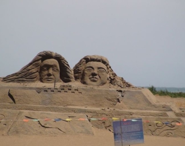 1999年7月,新疆維吾爾自治區(qū)黨委書記王樂泉同志檢查指導(dǎo)金沙灘旅游區(qū)開發(fā)建設(shè)情況,為這里優(yōu)美的自然風(fēng)光所吸引,欣然提詞“西部明珠金沙灘”。