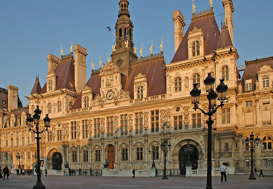 1803年以前,巴黎市政廳廣場叫“沙灘廣場”;1533年取名為Bocador;1871年,巴黎公社起義時被焚之一炬;直至1882年,新巴黎市政廳才重新修復落成。