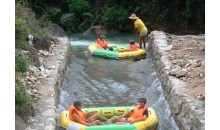 龍潭峽漂流位于臺山第二高山—北峰山南麓。龍潭峽漂流河全程長約5公里,漂流時間約99分鐘,河道崎嶇彎曲、高低起伏,漂流河中奇形怪狀的大石組成一道極有觀賞性的石林景觀。最大落差30多米的斜坡令你驚心動魄、尖叫聲不停,體會刺激漂流的極大樂趣,漂流過程中讓你領略大自然的風采,植被茂盛。在此連綿起伏的山巒中間,穿流著從巖縫中滲出會聚的泉水,集泉成溪,在山峽中穿石繞壁,川流不息。
