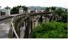 拉塔石炮臺位于拱北炮臺山。清政府在第一次鴉片戰爭中失去了對澳門的軍事控制權以后,于1841年修筑拉塔石炮臺,派把總率兵駐守兼管關閘汛務。1849年8月22日,關閘龍田村發生了沈亞米等青年刺殺澳門總督亞馬勒事件。25日,澳葡當局在英、法、美等國的支持下,悍然進攻關閘地區,并攻占了拉塔石炮臺。1890年,廣州府前山海防軍民同知府蔡國楨面對葡萄牙人向前山、灣仔、橫琴等地擴張及軍事挑釁,不畏強暴,毅然領兵收復拉塔石炮臺,隨即加強陸地、水域的布兵設防。