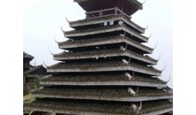 地坪風雨樓 這是貴州省最大、造型最美的風雨橋。長達50多米的地坪風雨橋始建于清光緒二十年即公元1894年,1959年毀于火災,1964年重建。整座橋不用一釘一鉚,而運用杠桿力學原理,將大小不一的柱、枋、檁、凳、欄桿等全部用杉木鑿榫穿枋構成。橋體為長廊式木結構,橋上有一大兩小共三座橋樓。居中的大橋樓是鼓樓式建筑,兩邊的橋樓皆為三層重檐雙斜面屋頂。