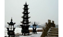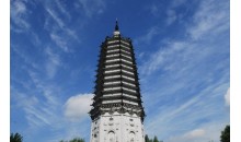無(wú)垢凈光舍利塔:遼寧省文物保護(hù)單位。位于沈陽(yáng)市皇姑區(qū)塔灣街黃土崗上。建于遼重熙十三年(1044),清崇德五年(1640)重修。是沈陽(yáng)市現(xiàn)存較古老的建筑之一。從前,這里東連昭陵,南臨沼澤,古色蒼然,"塔灣夕照"為沈陽(yáng)八景之一。該塔為13層密檐八角形磚塔,高約33米。整體可分地宮、塔座、塔身、塔檐、塔剎5部分。