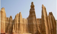 虎跳灘土林位于元謀縣城西北32公里的物茂鄉(xiāng)虎溪行政村,又稱物茂土林,芝麻土林,總面積2.3平方公里。虎跳灘土林形狀以城堡狀、屏風狀、簾狀為主,高度一般10?15米,最高27米。