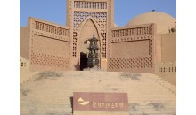 大漠土藝館文位于新疆吐魯番火焰山下。煙云繚繞的火焰山下,郁郁蔥蔥的木頭溝河畔,一座規模宏大的人文景觀以其獨特的藝術風格,屹立在312國道西側,它就是1991年5月對外開放接待游人的新疆火焰山大漠土藝館,地理坐標89°32″7′,42°56″8′,海拔140米。這里是火焰山腹地的五百羅漢谷,是佛光寶地。眾所周知,自古名山僧占多,火焰山也不例外,著名的佛教遺址--柏孜克里克千佛洞就開鑿在此谷。